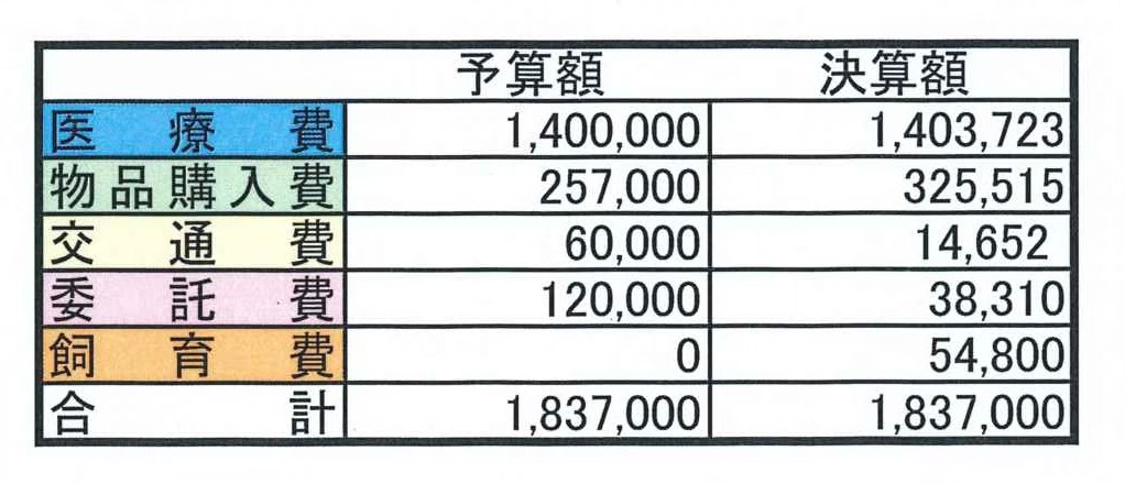 老犬が多いリライフですので医療費がメインとなっておりますが、協力していただいている動物病院の先生やスタッフの方達へ改めて感謝致します。